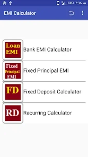 EMI Calculator – Loan and Mortgage is an application that helps you calculate the EMI (Equated Monthly Installment) of your car, home, other loan entities, and also recursively calculate the EMI of your fixed deposits and recurring deposits. It is an easy-to-use application, which can calculate all the values by inputting all the other values.
